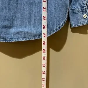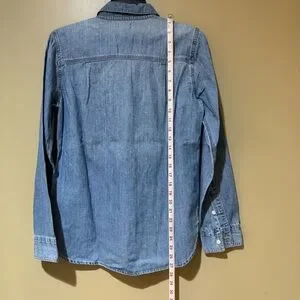 Classic J.Crew Jeans women's denim shirt featuring a light-wash chambray style fabric. The shirt offers