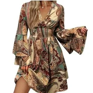 Paisley print long sleeve Dress New without tags