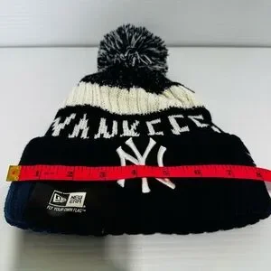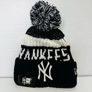 New MLB New York Yankees knit beanie in blue and white. Features a pom-pom on top.