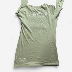 Ed Hardy Light Green Long-Sleeve Graphic Tee with 'Love Kills' Skull