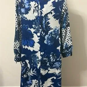 Chico’s Reversible Floral Duster Jacket Blue White NWT Size 1 Kimono