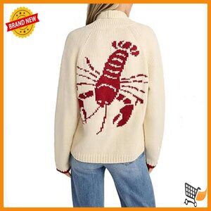 Brand new, never worn, and in flawless condition — this long sleeve cardigan sweater features a unique and playful lobster print, offering a fun statement piece perfect for casual fashion. Designed with a loose, comfortable fit and a versatile button-down front, it's ideal for relaxed layering or dressing up your look.