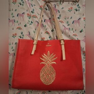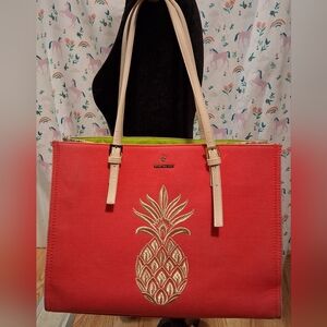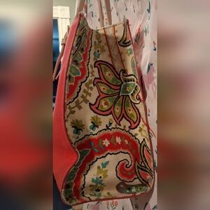 Spartina 449 Pink & Green Pineapple Paisley Linen Boho Casual Tote Purse Bag