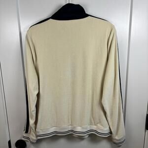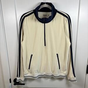Faherty Richie Velour Velvet Cream & Navy Blue Quarter Zip Women’s Size Large