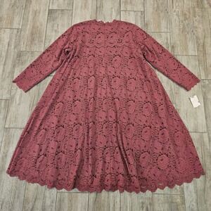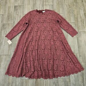 Dainty Jewells Mauve Floral Lace Modest A-Line Dress Size 3XL Long Sleeve NWT