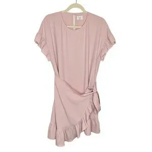 Aritzia Wilfred Ninette Ruffle Wrap Dress in Rose Quartz, M