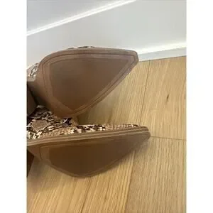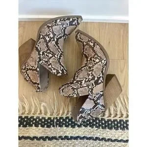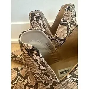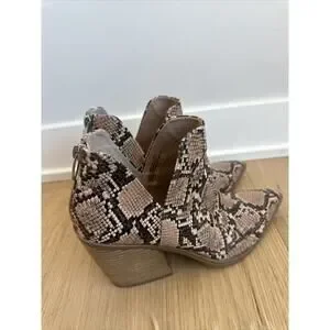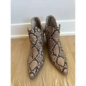 Steve Madden ALYSE Tan Multi Leather Pointed Zip Ankle Boots Block Heel SZ 10