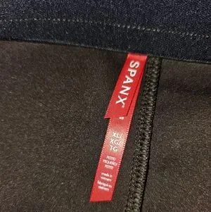 All original tags attached: red SPANX tag, PETITE tag, size XL/TG tag, fabric tag, and MSRP price tag. Never worn, pet-free & smoke-free home. Ready to ship fast!