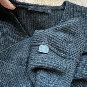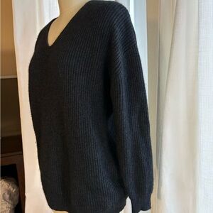 Wool & cashmere blend, charcoal color V neck, long sleeve
