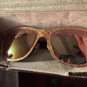 Stylish Gucci sunglasses with a textured brown frame. Perfect for a modern look.