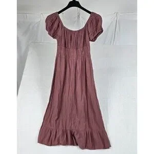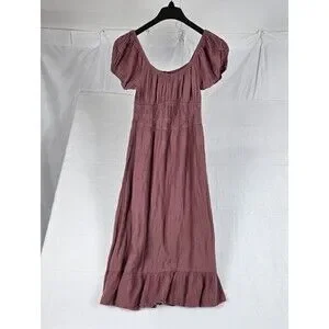Sim & Sam Milkmaid Gauze Midi Dress Women Large Mauve Clay Smocked Puff Sleeve