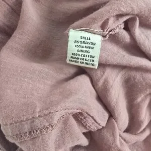 This Sim & Sam midi dress is crafted in a Mauve Clay rayon-linen blend with a soft, lightly crinkled woven texture. It features a wide scoop neckline and short puff sleeves with elasticized edges for comfortable structure. The dress has an empire waist seam with subtle gathering that creates a smooth drape through the skirt. A full cotton lining adds coverage and breathability. The relaxed A-line silhouette finishes with a ruffled hem for a gentle tiered effect. The construction is lightweight with an easy flow, making it suitable for warm-weather wear.