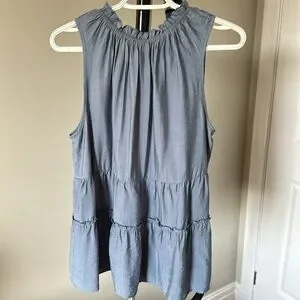 Sz L 🇨🇦⭐️NWT Papillon Chambray Sleeveless tiered Summer Blouse