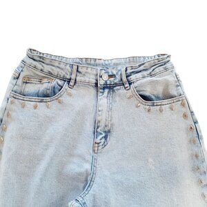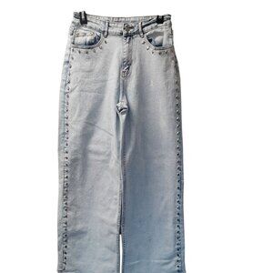 Blue b. Womens Jeans Medium Light Blue Wide Leg Cotton Blend Embedded Studded