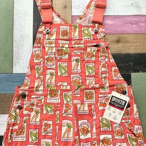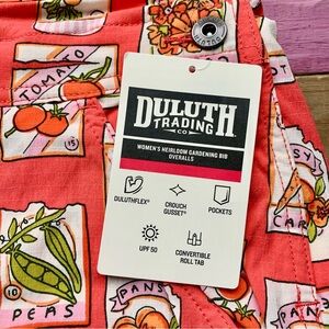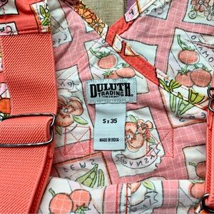 NWT Duluth Small x35L Heirloom Gardening Bib Overalls Coral Seed Packets Farming