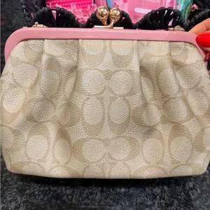 Signature Canvas Tan/Pink Colored Coach Bag.