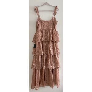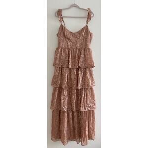 Lulus Dusty Pink Floral Bustier Tiered Side Slit Maxi Dress XL