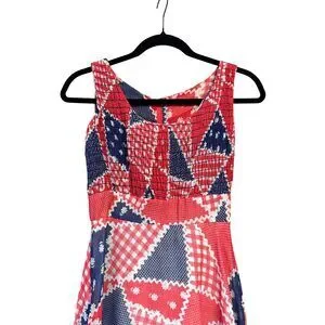 1960s/70s Vintage Red, White & Blue Patchwork Dress + Capelet, size xs