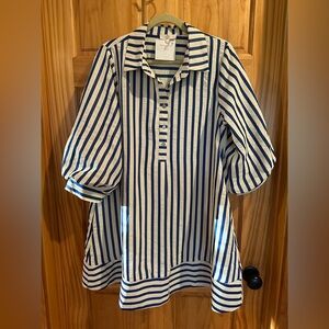 entro Blue and White Striped Dress Top