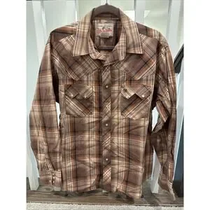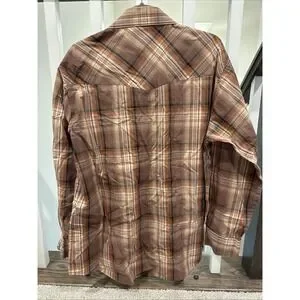 Wrangler Men's Western Shirt Large Brown Plaid, Pearl Snap-Up, Long Sleeve