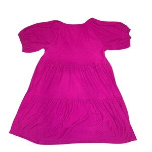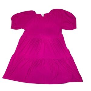 J.Crew hot pink tiered clip dot babydoll dress with puff sleeves .