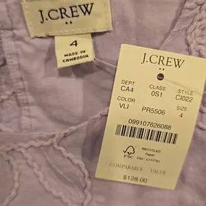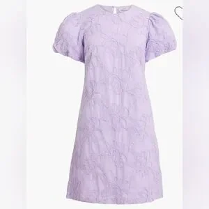 NWT J.Crew Eyelet puff-sleeve mini dress :$128 Vintage Lilac size 4 purple