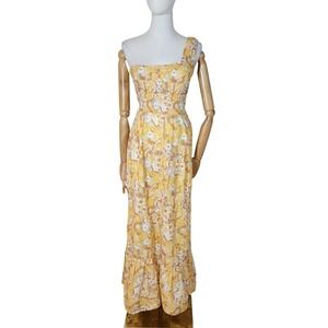 Anthropologie Charlie Holiday Pamela Yellow Floral Linen Maxi Sundress Vacation