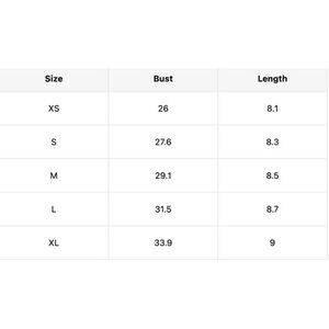TOP SIZE CHART IN PHOTOS