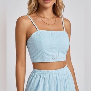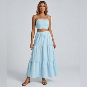 Embrace effortless summer elegance with this stunning two-piece eyelet maxi set. Combining a modern cropped silhouette with timeless embroidery, this set is designed for sun-drenched days and breezy evenings.