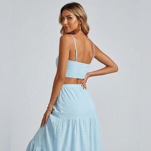 Boho Eyelet Embroidered Two-Piece Maxi Set Blue