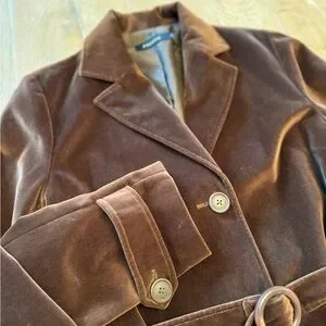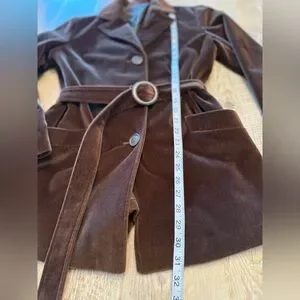 Vintage Prague Brown Velvet Belted Blazer Jacket - Women L