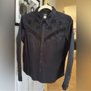 Ralph Lauren Double RL Floral Appliqué Limited Edition Western Style Snap Shirt / Black / Size 3 (See RRL Size Chart)
