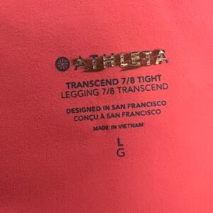 Athleta Transcend 7/8 Tight Coral Petal Pink Large NWOT
