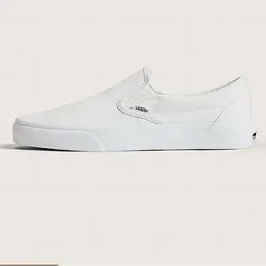 Minimal slip-on sneaker by Vans. Smooth canvas upper. Elastic side accents for easy wear. Clean rubber sole with timeless look