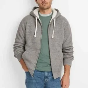 LANDSEND Men's Sherpa Lined Waffle Full Zip Hoodie