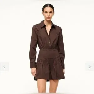 STAUD Rocco Bottom Chocolate Long Sleeve Mini Dress Size 8