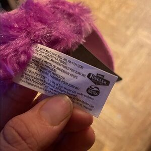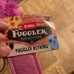 Fuggler purple bunny keyring plush with a mischievous grin. Soft, fuzzy purple body and light pink face details. Attaches securely with a durable clip for backpacks and keys. Fun, collectible character kids will enjoy.