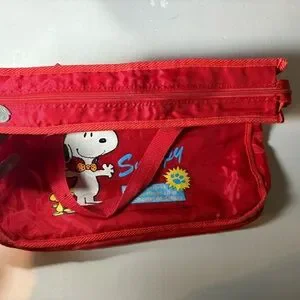 Vintage 80s Snoopy Peanuts Red Nylon Tote Bag - Woodstock - Rare Zipper Pull