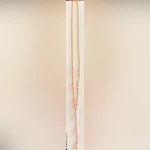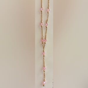 This elegant necklace features a delicate gold chain adorned with charming pink stones. Perfect for adding a touch of sophistication to any outfit.