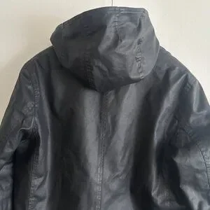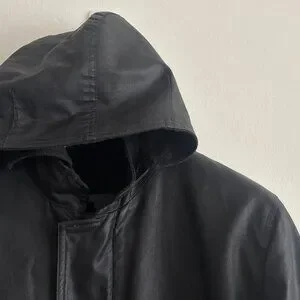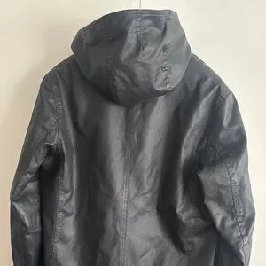 $600 M0851Hooded Waxed Cotton Zippered Black Jacket - Large