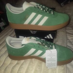 Step out in style with these Adidas men's shoes, featuring a vibrant green and white design. Perfect for casual outings, these shoes offer both comfort and a trendy look.