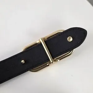 Coach Morgan Rectangle Black Leather Buckle Belt Medium M Gold Horse Carriage