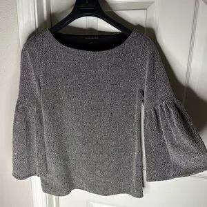 Banana Republic Soft knit top with flared bell sleeves. Subtle metallic knit finish. Graceful neckline. Polished look for casual or dressy wear.
