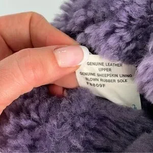 Fabric: Genuine leather upper with genuine sheepskin lining; blown rubber sole.