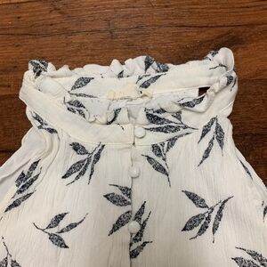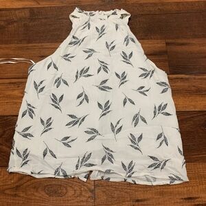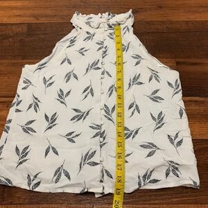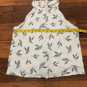 Gilli High Neck Tank Top Button Down White Gray Leaves Women’s Size S Lined