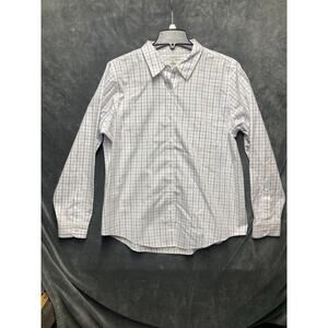 L.L. Bean Top Women Sz XL White Pink Blue Plaid Wrinkle Free Work Gender Reveal