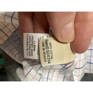 This L.L. Bean top is a gender-neutral shirt in women's size XL, featuring a white, blue, and pink plaid pattern. Made from 100% cotton fabric, this wrinkle-free top is easy to care for and breathable, making it perfect for casual occasions in spring and summer. The collared neckline, button closure, and long sleeves give it a classic and preppy look, suitable for various themes such as school, university, or colorful fashion styles. Machine washable and made in Thailand, this button-up shirt is a versatile addition to any wardrobe for a comfortable and stylish fit.