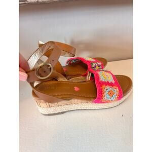 Steve Madden Girls Karlee Knit Front Slingback Wedge Sandals Colorful Pink SZ 13