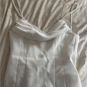 MESHSKI White Dress with Pearl Straps and Bra