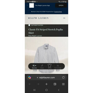Polo Ralph Lauren Classic Fit Stretch Poplin Grey Gray Men's Striped Button-Down Dress Shirt LG 16 1/2